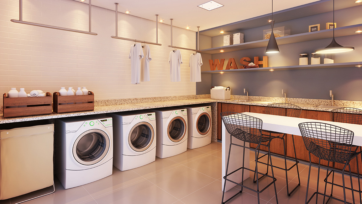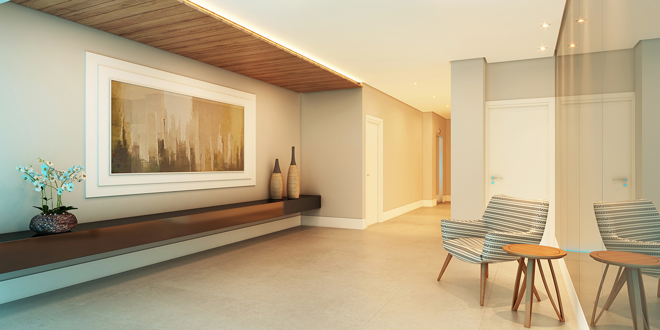 Facilidades que só um empreendimento completo pode proporcionar. Perspectiva Artística do Fitness Perspectiva Artística do Espaço Gourmet Perspectiva Artística do Hall Perspectiva Artística da Lavanderia Perspectiva Artística da Piscina Perspectiva Artística da Portaria onde o designer contemporâneo encontra o conforto.
